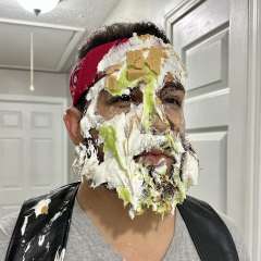 Pieceofcake had a sloppy pie dumped all over his head by pg__205